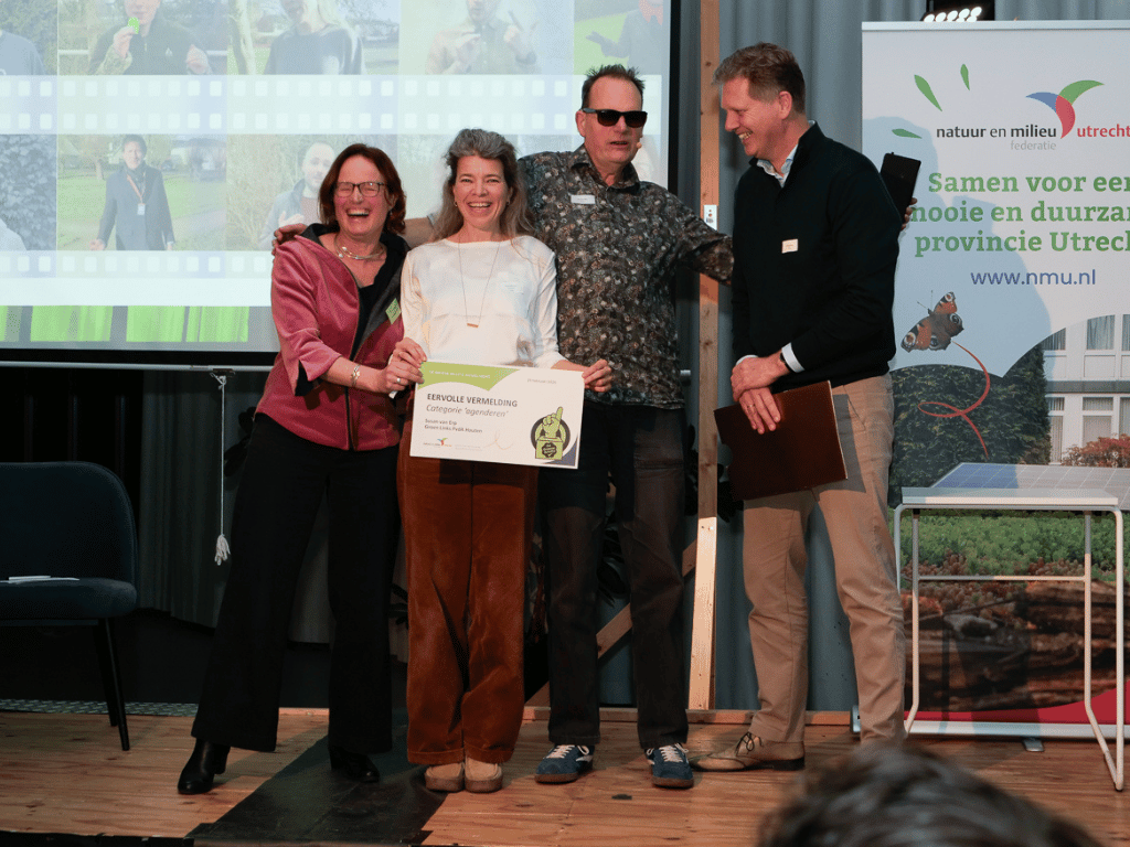 Op het podium deelden ook Erik Verhallen, David van der Veen, Dymph Hoffmans, Soenita Bhaggoe en afgevaardigden van de Natuur en Milieufederatie Utrecht hun inzichten over urgente thema’s als landbouw, voedsel, buurtvergroening, energie, warmte en circulariteit. Samenwerking tussen gemeenten en bewonersinitiatieven is daarbij essentieel – en de NMU kan daarbij ondersteunen.