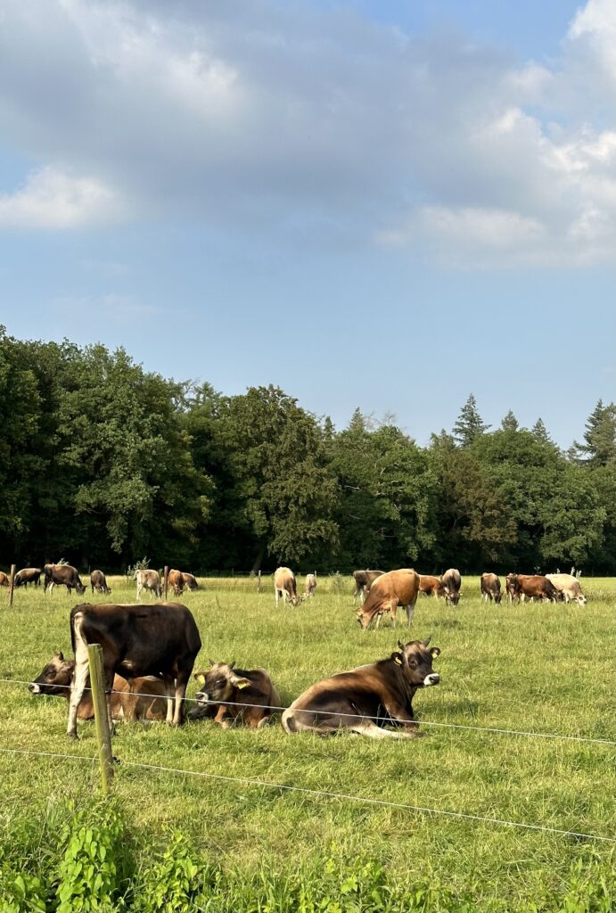 “Wij zijn Josephine en Sil van Boerderij Eyckenstein in Maartensdijk. Samen met ons team uit medewerkers, vrijwilligers, buurtbewoners en andere betrokkenen runnen we hier een gemengd biologisch bedrijf. Alle activiteiten op de boerderij vinden uiteindelijk plaats om het landschap op de rond 90 hectare in beheer te versterken en te herstellen. Een gezonde bodem, meer biodiversiteit en, niet op de laatste plek, een betrokken gemeenschap van mensen die hier actief aan bij dragen. Op dit moment worden er op de boerderij zo’n 150 Jersey stieren gehouden voor vlees en 150 dubbeldoel kippen. Ernaast is er een groentetuin voor groentepakketten en onderhouden Josephine en Sil en boerderijwinkel. Alle dieren zijn zo veel mogelijk buiten en worden onder regeneratieve principes gehouden.”