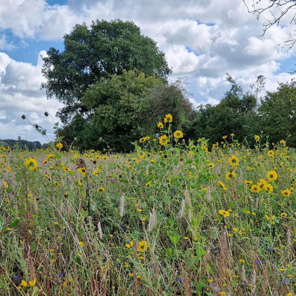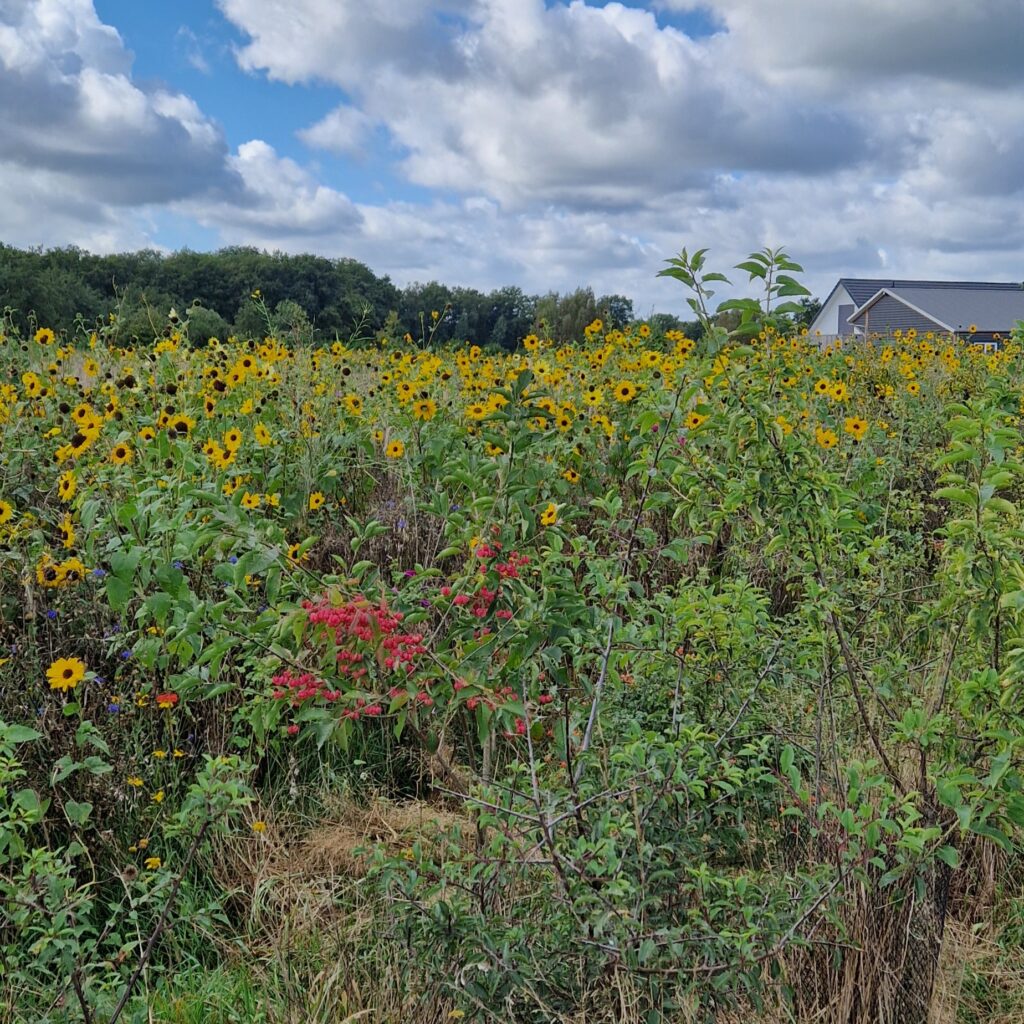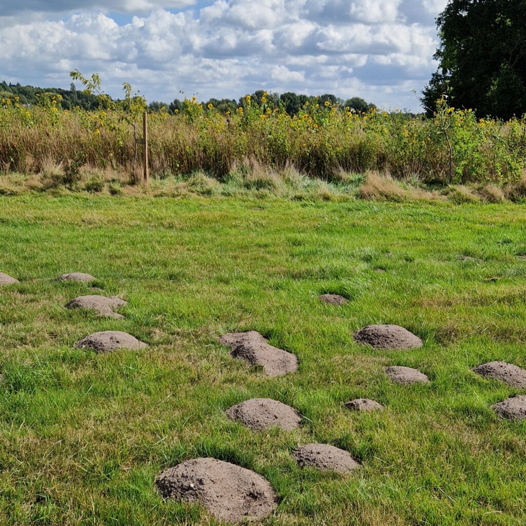Frank en Angelique werken hard aan het realiseren van veel natuur. Soms komen ook vrienden en collega’s helpen. Zo plantten ze laatst – in ruil voor een lekker stuk taart en soep – 1080 haagplantjes om de wildakker. Daar zijn nu al heel veel soorten vogels te vinden: puttertjes, mussen, groenlingen, koolmeesjes, roodborstjes, buizerds, torenvalken, steenuilen en kerkuilen. Een voedselbos is nog even voor later. Misschien dat ze daar in de toekomst een groep vrijwilligers voor vinden die het leuk vinden om daaraan bij te dragen.