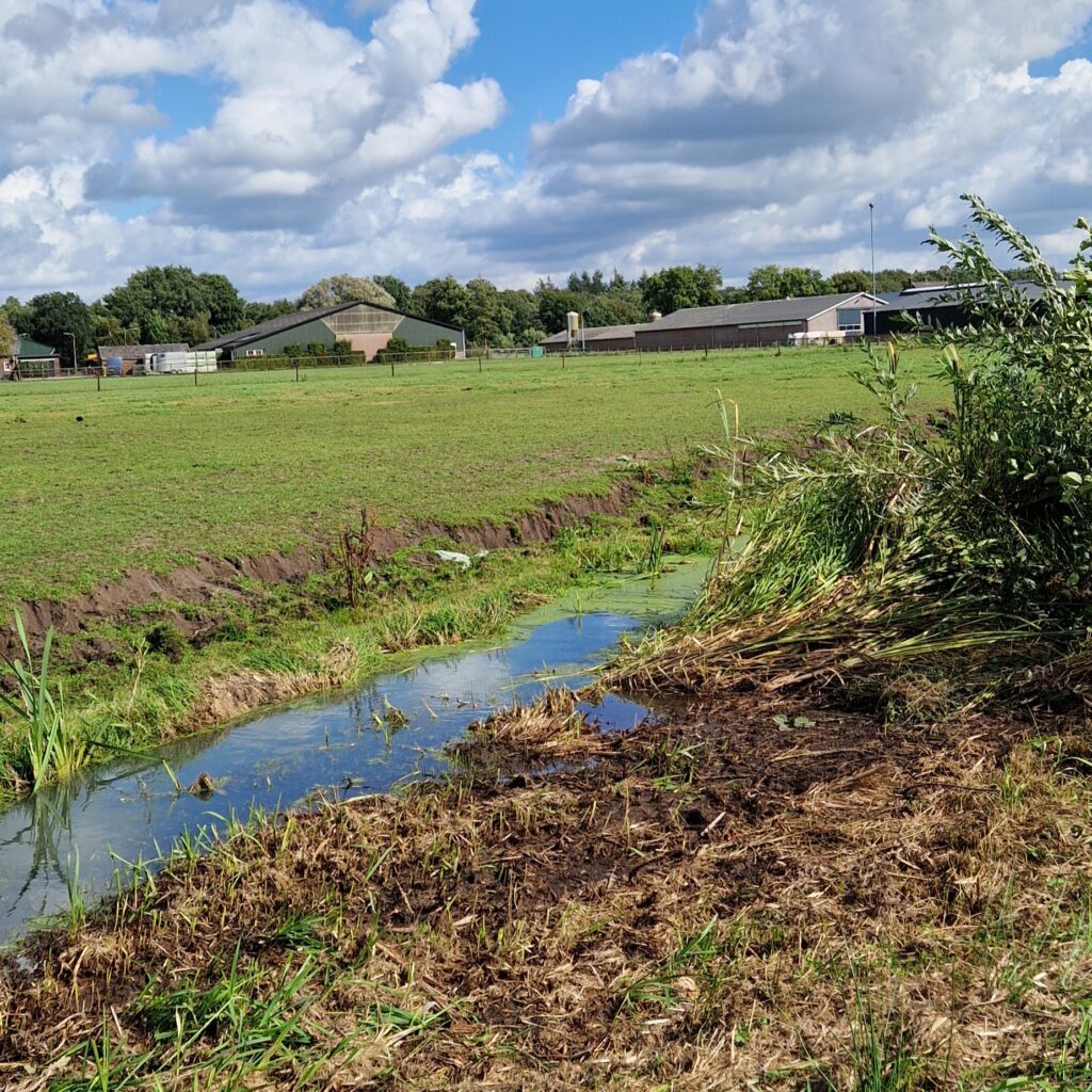 Ik zet me aan tafel in de woonkeuken van het mooie huis van Frank en Angelique. Er liggen, naast de heerlijk versgebakken brownies, allerlei kaarten op tafel. Die gaan ver terug in tijd. Frank vertelt over de historie van deze plek. Rond 1900 zag je heel veel bosjes, hagen en bomenrijen; echt een coulissenlandschap. Toen ze hier kwamen wonen, wilden ze het landschap weer in oude staat terugbrengen met als doel de biodiversiteit enorm te laten toenemen. Zo ontwierpen ze een poel, biodiverse sloten en weides. Ze vonden subsidies bij de provincie en het Rijk voor respectievelijk aanleg en onderhoud van oude landschapselementen.
