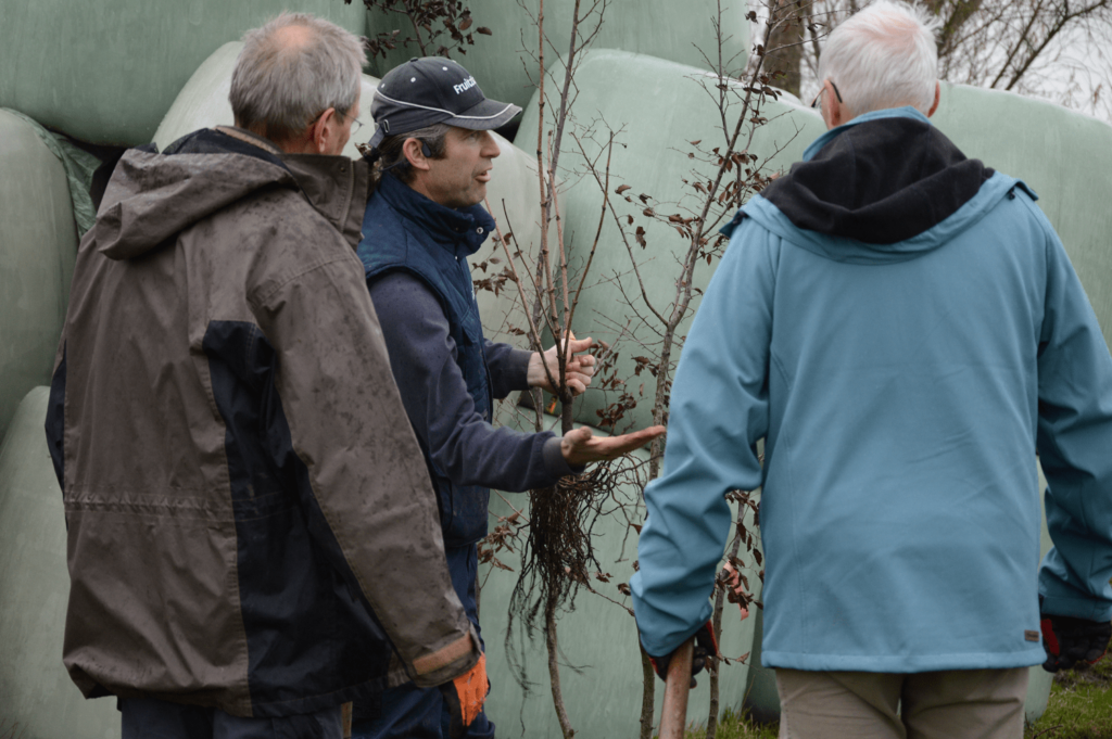 Herman en Daphne Roest beheren sinds 2023 het ouderlijk bedrijf van Herman: een kleinschalige boerderij waar de gezondheid van hun 25 koeien (liefkozend “onze hardwerkende dames”) bovenaan staat. “Het perceel dat we vandaag aangelegd hebben, is vooral gericht op de gezondheid en welzijn van onze koeien. We willen dat zij kunnen eten wat ze nodig hebben, blij zijn en dat hun gezondheid op peil blijft. Onze koeien kunnen zelf uit de voederhaag eten wat ze nodig hebben. Agroforestry draagt zo bij aan de gezondheid en het welzijn van onze dames. Zo kunnen we een toekomstbestendig bedrijf neerzetten.”