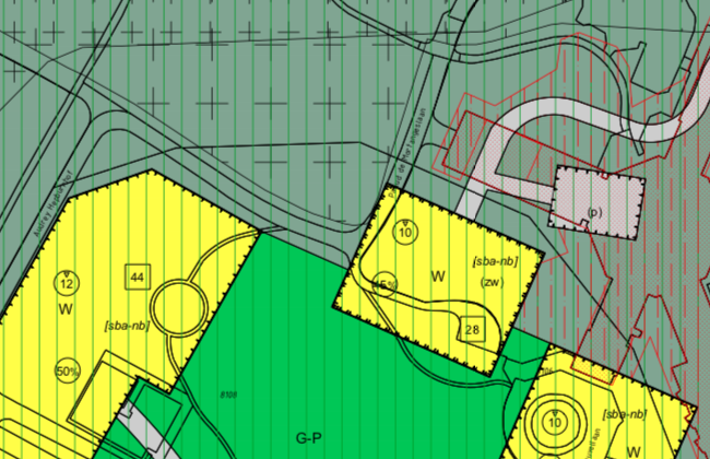 Op haar terrein aan de rand van Doorn wil zorginstelling De Basis enkele nieuwe paviljoenen bouwen. Eén daarvan, paviljoen C (zie kaartje), zou aanvankelijk deels binnen het Natuurnetwerk Nederland (NNN) en buiten de rode contour (bestaand stedelijk gebied) komen te liggen.